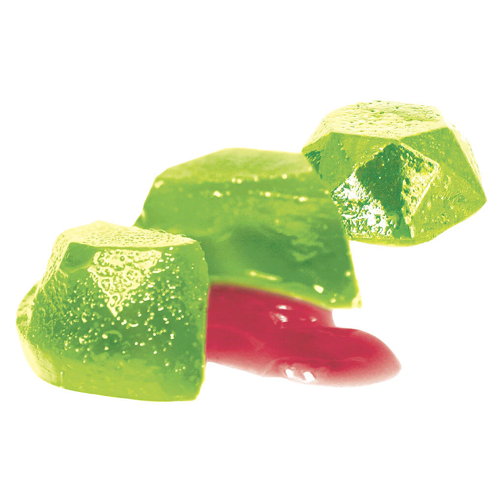 Olli's Bursts Something About Sour Apple Cherry offers a delectable fusion of flavours, combining a green apple flavoured soft chew exterior with a cherry flavoured liquid centre, resulting in a unique taste experience. Olli Bursts are filled with cherry syrup that bursts in your mouth when you take a bite and brings back nostalgic memories. The combination of the crisp apple sweetness with cherry adds a luscious and fruity dimension, making each bite a flavourful journey and creating a delightful surprise flavour in your mouth. The liquid centre adds a mouth watering juiciness with cherry flavour to every bite that appeals to those who enjoy the balance of sweet and sour. Our Olli Bursts Something About Sour Apple Cherry are made with natural apple flavours. Each soft chew is infused with 5 mg of THC.